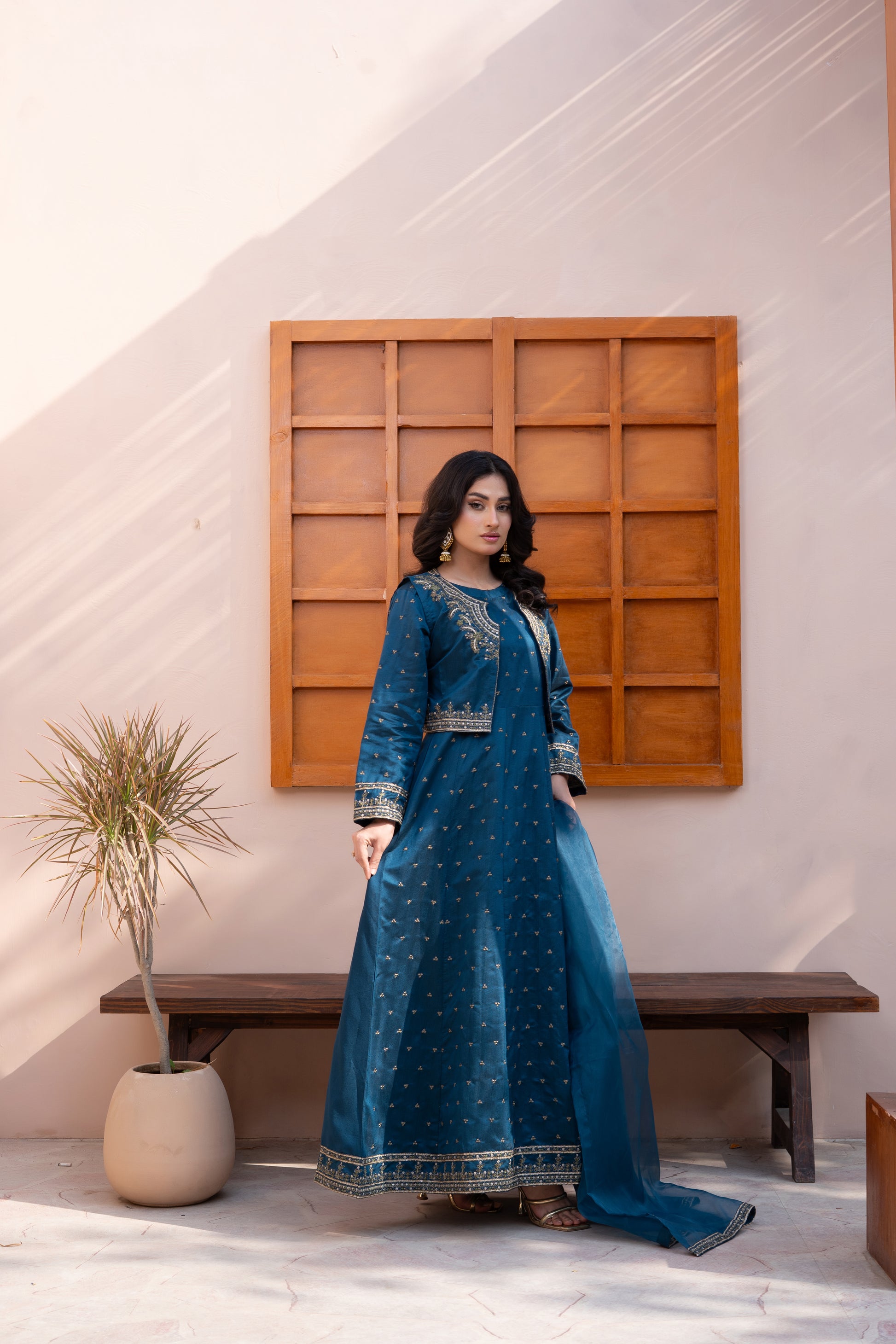Elevate your wardrobe with this charming 3-piece Paper Katan maxi set that celebrates timeless style with a contemporary twist. Adorned with delightful embroidered details on the sleeves, this collection pairs beautifully with a gracefully bordered net dupatta. Whether you're attending a wedding, celebration, or special event, this ensemble brings effortless sophistication and joy to every moment.